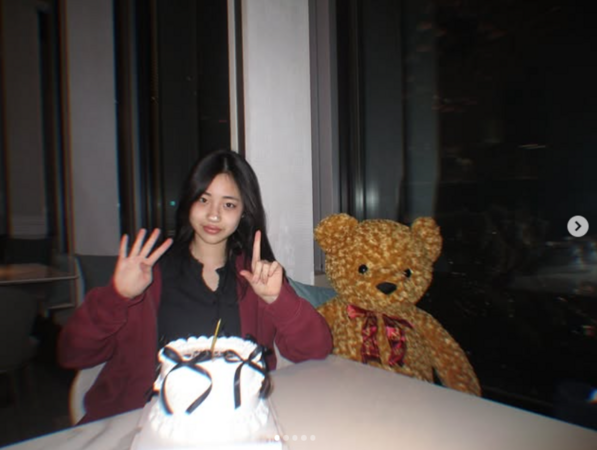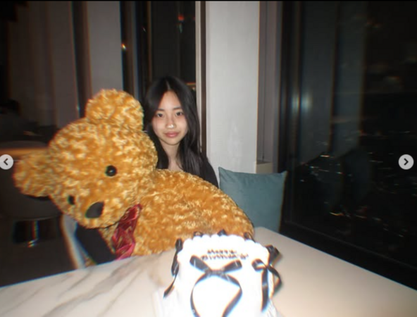 照片中,可以看到許老三身穿黑色上衣,外罩一件酒紅色的寬鬆外套,配色沈穩卻不失青春活力。許老三面對鏡頭神情自然,自信地舉起雙手,分別擺出「1」與「4」的手勢,象徵自己步入14歲,落落大方的氣質完全遺傳自媽媽小S。
