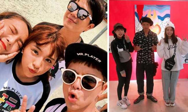 ▲黃鴻升(左圖右)與峮峮(左圖中)在節目結緣,女方曾和黃沐妍(右圖右)一起捧場男生的展覽。(圖/翻攝自峮峮、黃鴻升IG)