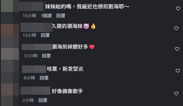 Sandy的新髮型曝光後,立刻吸引大批網友湧入留言區朝聖。許多長期關注的粉絲驚訝地說,「瀏海剪掉變好多」、「哇塞,新髮型欸」,更有人形容她現在的模樣「好像偶像歌手」,不少人對她久違的瀏海造型給予高度評價,引發一波熱烈討論。