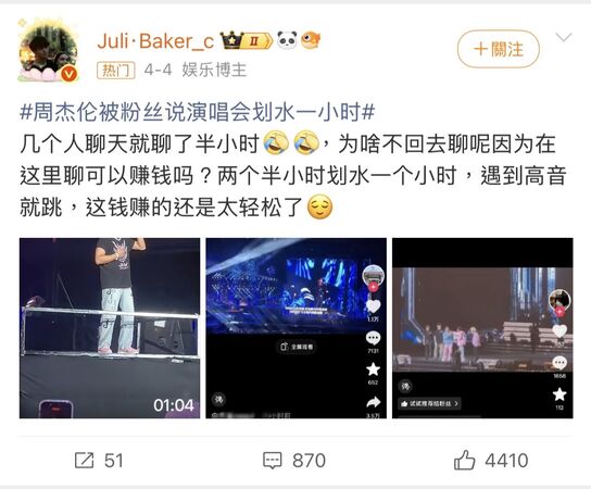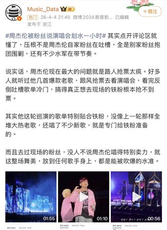 ▲周杰倫杭州演唱會,遭網友指划水成分大。(翻攝自微博)